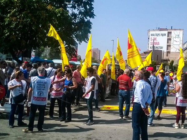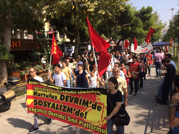 - "Emperyalist savaşa, kapitalist sömürüye, gericiliğe karşı kurtuluş devrimde sosyalizmde! /BDSP" pankartıyla mitinge katılan sınıf devrimcileri stand açarak Kızıl Bayrak gazetesini emekçilere ulaştırdı.