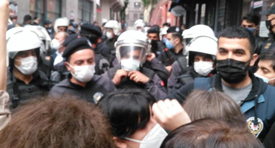Haziran Direnişi vesilesiyle yapılacak eylemi engellemek amacıyla Beyoğlu Kaymakamlığı’nın getirdiği yasaktan dolayı İstiklal Caddesi’nde her sokak olduğu gibi İHD’nin bulunduğu sokak da polis ablukası altındaydı.