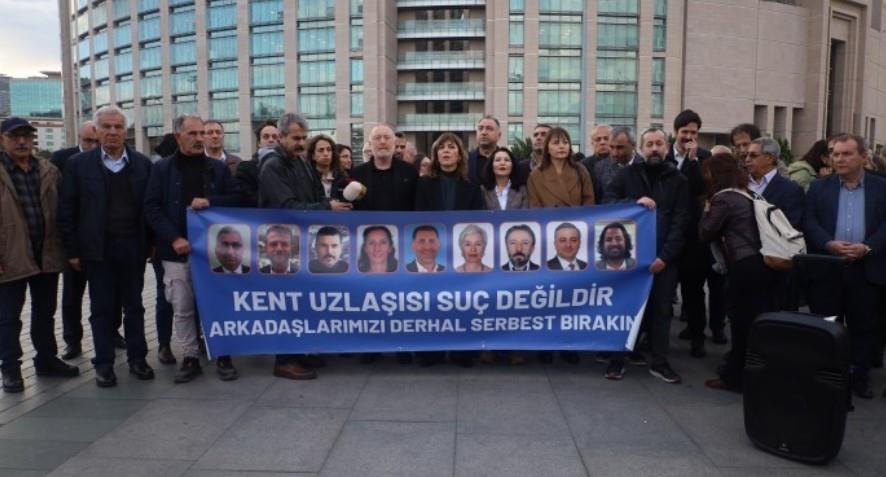 Halkların Demokratik Kongresi (HDK) ve Halkların Eşitlik ve Demokrasi Partisi (DEM Parti), Kent Uzlaşısı davasının duruşmasının görüleceği İstanbul Adliyesi önünde açıklama yaptı. Açıklamada Meral Danış Beştaş şunları dedi: