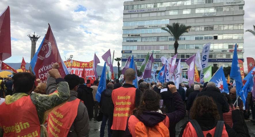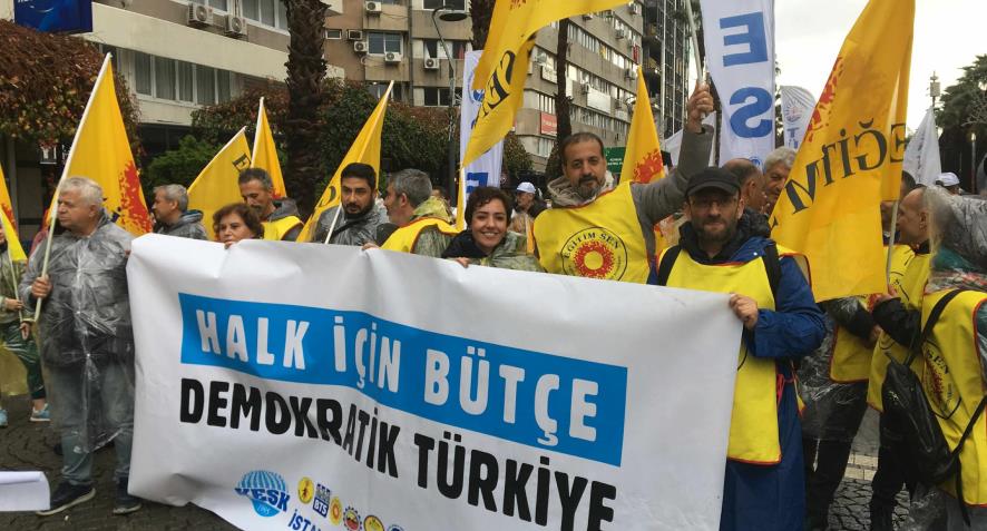 KESK İstanbul Şubeler Platformu, KESK Manisa Şubeler Platformu, KESK Aydın Şubeler Platformu, KESK Denizli Şube, Uşak Şubeler Platformu, Balıkesir Şubeler Platformu kendi pankartları ile mitinge katıldı. Kötü hava koşulları altında başlayan yürüyüş katılımı etkilese de yürüyüş coşkulu bir şekilde gerçekleştirildi. Yürüyüş boyunca bütçenin sermayeye ayrılması ve emekçilerin krizin faturasını ödemesi ve mücadele üzerine konuşmalar yapıldı. Birlik ve mücadele söylemleri ile birlikte ülkenin demokratikleşmesi üzerinden vurgular yapıldı. AKP ve sermaye politikalarının ortaklığı ise sıklıkla teşhir edildiği mitingde Digel direnişçileri yürüyüşe kendi pankartları ile katıldı.