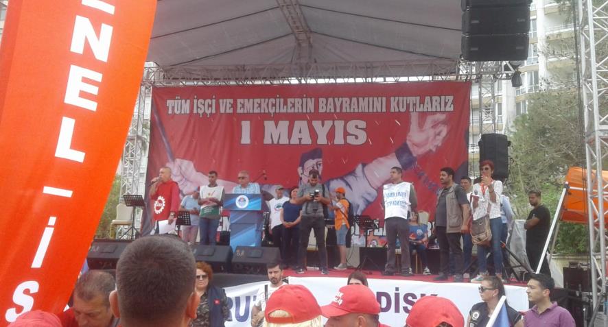 Tüm kortejler miting alana girdikten sonra saygı duruşu yapıldı. Sonrasında “1 Mayıs Tertip Komitesi” adına DİSK, KESK, Türk-İş ve Mersin Kadın Platformu adına konuşmalar yapıldı.