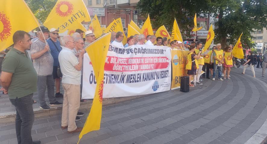 Eğitim ve Bilim Emekçileri Sendikası (Eğitim Sen), 15 sendika ile birlikte Milli Eğitim Bakanı Mahmut Özer’den talep ettikleri randevuya yanıt verilmemesine, Anayasa Mahkemesi (AYM) Genel Sekreteri ile yaptıkları görüşmeye ve Öğretmenlik Meslek Kanunu’nun (ÖMK) iptali için verdikleri dilekçeye ilişkin basın toplantısı düzenledi. Toplantıda konuşan Eğitim Sen Genel Başkanı Necla Kurul, “Bakanın eğitim emekçilerinin temsilcilerine randevu vermemesi, yüz binlerce eğitim emekçisine saygısızlıktır” dedi. Kurul şöyle devam etti: