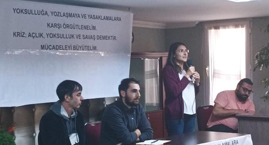 Sermaye iktidarı elindeki bütün zor araçlarıyla halkı sindirmeye, emekçileri yalnızlaştırmaya ve örgütsüz bırakmaya çalışıyor. Çünkü, ekonomik ve politik kriz derinleştikçe emekçi halkların, işçilerin öfkesi giderek büyüyor, egemenler eskisi gibi yönetemiyor. Her gün yoksullaşıyoruz, çocuklarımızın geleceği elimizden çalınıyor, yaşam alanlarımız olan mahallelerimizde çeteler kol geziyor. Bu saldırganlık dalgası emekçilerin giderek büyüyen öfkesinin sindirilmek istenmesindendir, bizleri köşesine çekilmiş, yanı başımızda yangın yerine dönen, her tarafı acı ve sefaletle dolu coğrafyalarımızda olup bitenlere sessiz kalan insanlar haline getirmek istiyorlar! Ama korkmuyoruz, susmuyoruz, tüm saldırılara rağmen buradayız diye haykırıyoruz!