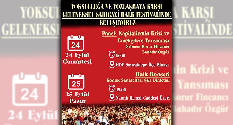 İstanbul’un emekçi semtlerinden olan Sarıgazi’de düzenlenen geleneksel Sarıgazi Halk Festivali yıllardır yasaklamalara maruz kalıyor. 2014’ten beri bilfiil devletin yasaklamaları ve saldırıları altında düzenlenmeye çalışılan Halk Festivali, bu yıl da benzer yasaklamalara tabii oldu. Festival kapsamında açık ve kapalı alanda düzenlenecek bütün etkinlikler Kaymakamlık talimatıyla yasaklandı.