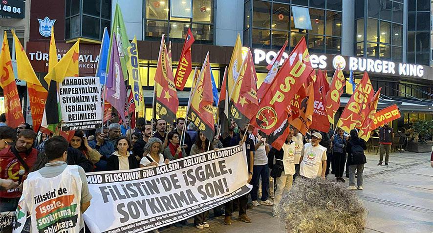 Basın açıklamasında “ Katil İsrail Ortadoğu’dan defol”, “Emperyalistler yenilecek, direnen halklar kazanacak!”, “Filistin halkı yalnız değildir”, “Hamaseti bırak ticareti kes” sloganları atıldı.