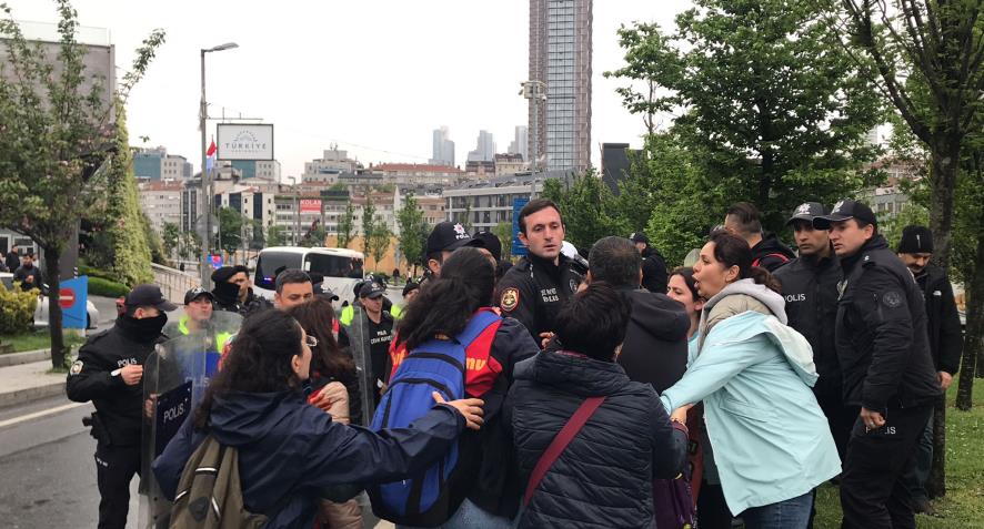 Saraçhane'de toplandıktan sonra Taksim'e yürümek isteyenlere polis biber gazıyla saldırdı. Polis ablukasına alınan bir grup gözaltına aldı. Birçok kez barikata yüklenen kitleye polis biber gazı ve plastik mermi ile saldırdı.