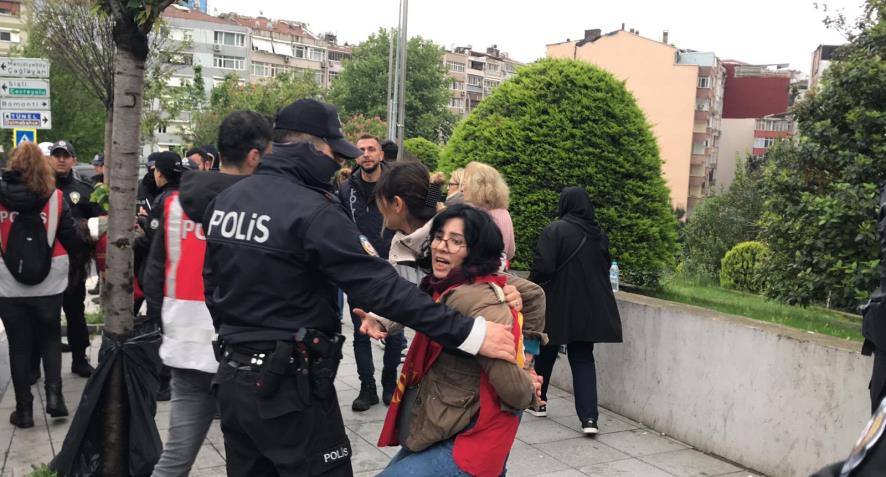 “1 Mayıs alanı Taksim Meydanı!", "Biji Yek Gulan!" sloganları ile Taksim'e yürüyen Mücadele Birliği okurları ve Mücadele Birliği muhabiri Serpil Ünal polis saldırısıyla gözaltına alındı.