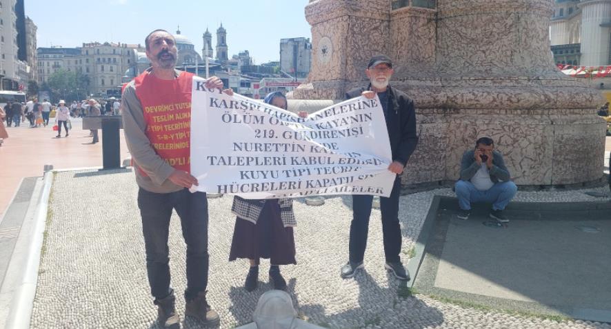 “Ağırlaştırılmış müebbet infaz rejimi hapishaneleri olan Y Tipi hapishanelere karşı ölüm orucunda olan Nurettin Kaya için basın açıklaması yapmak isteyen Feridun Osmanağaoğlu ve Hasan Basri Yıldız’ın Çağlayan Adliyesi önünden gözaltına alındığı bilgisi verildi.”
