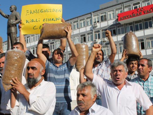 Tarım ve Orman Bakanlığından “yetki belgesi” almadan veya bildirimde bulunmadan tütün ticaretini 1 Temmuz itibariyle yasaklamasına karşı Adıyaman ve Malatya’da başlayan eylemler 3’üncü gününde devam ediyor. Tütün ticareti yapanlara 3 yıldan 6 yıla kadar hapis cezası verilmesi yönünde düzenlemenin geri çekilmesini talep eden binlerce tütün yetiştirici, Adıyaman merkez ile Çelikhan ilçesi ve Malatya'nın Doğanşehir ilçesinde yol kapatıp eylem yaptı. Yolu saatlerce kapatan yetiştiriciler, davul zurna eşliğinde halaylar çekti. Yetiştiricileri ikna çalışmaları ise karşılık bulmadı. Yaptıkları eylemlerle sanal medyada seslerini duyurmaya çalışan tütüncülerden birinin paylaştığı “Tirşikçî kapitalistlere hayır” sloganı ve görüntüsü kısa sürede binlerce kez paylaşıldı.