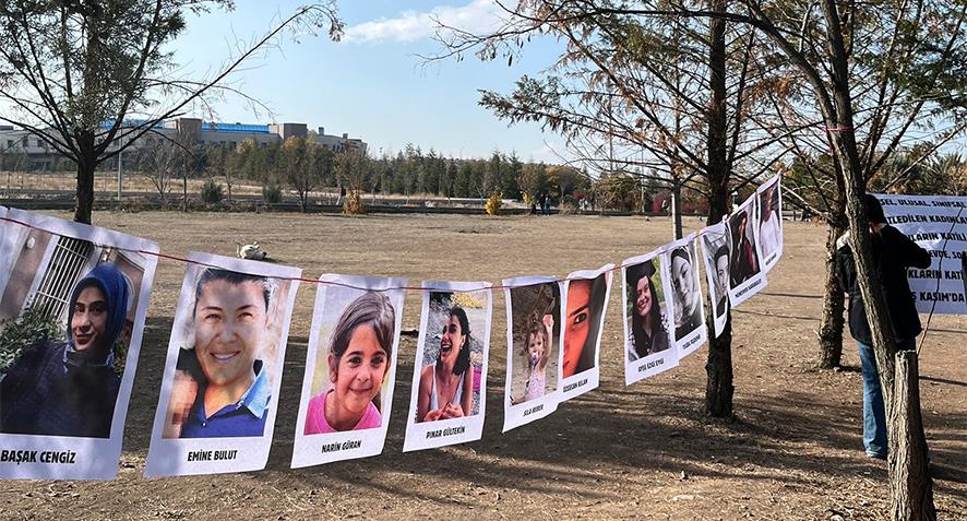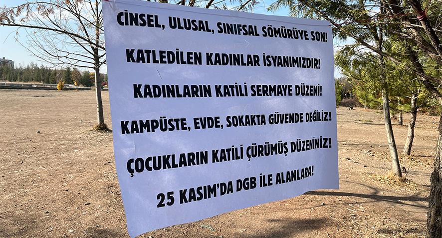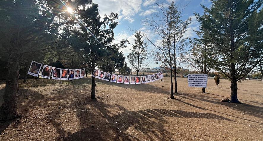 Devrimci Gençlik Birliği Ankara Üniversitesi Gölbaşı Kampüsü ve Hacettepe Beytepe Kampüsü’nde 25 Kasım Kadına Yönelik Şiddetle Uluslararası Mücadele Günü nedeniyle katledilen kadın ve çocuklar için sergi düzenledi, broşürler dağıttı.