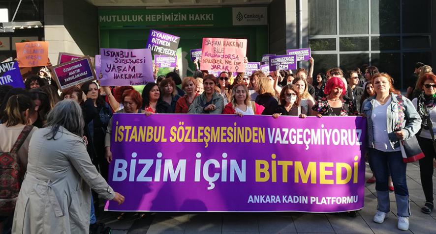 Ankara Kadın Platformu’nun çağrısıyla kadınlar, Danıştay’ın İstanbul Sözleşmesi'ni fesheden kararın iptal isteminin reddedilmesine karşı basın toplantısı gerçekleştirdi.