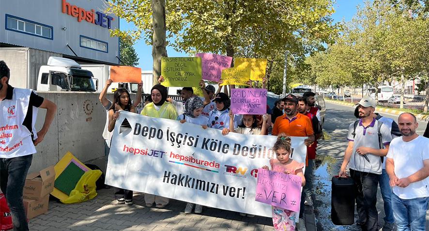İstanbul Esenyurt’ta bulunan HepsiJET deposunda çalışan 4 kadın işçi, tazminatlarını almak için 16 Şubat'ta eylem başlattı. Taciz, hakaret, tehdit, mobing ve kötü çalışma koşulları nedeniyle 27 Ocak'ta haklı fesih ile iş akitlerini sonlandıran kadınların, kıdem ve ihbar tazminatları ödenmedi. Buna karşı şirket deposu önünde eylem başlatan Viyan Çakır, Esra Yılmaz, Meryem Arslan ve Meryem Yılmaz, eylemlerini kararlılıkla sürdürüyor.