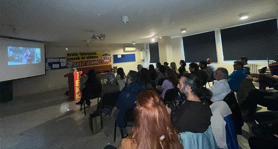 Saygı duruşunun ardından hazırlanan sinevizyon gösterimi izlendi. Sonrasında İEKK adına bir konuşma gerçekleştirildi. Konuşmada işçi ve emekçi kadınların yaşamlarında karşı karşıya kaldıkları sorunlar dile getirilerek bu sorunların çözüm yolunun ancak örgütlü mücadeleden geçtiği vurgulandı. Kadının gerçek kurtuluşunun ancak devrim ve sosyalizm ile mümkün olduğu ifade edildi.