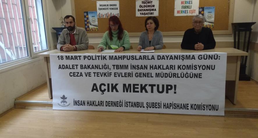 "Biz İnsan Hakları Derneği Kadın komisyonu olarak 8 Mart Haftası Etkinlileri içinde olan Kadın Mahpusların yaşadığı hak ihlallerini, Hasta olan kadın mahpusların hastalıkları ile mücadele ederken yaşadıkları sıkıntıları kamuoyu ile paylaşmak istedik."