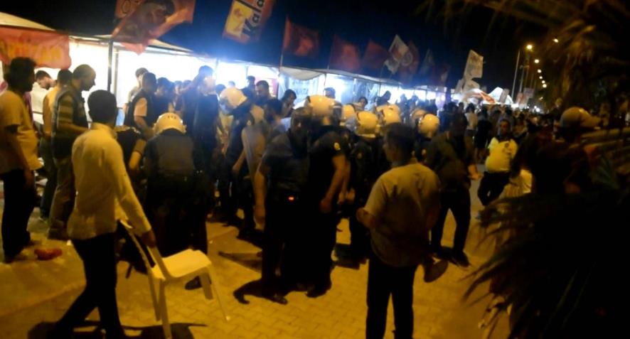 Samandağ’da düzenlenen Evvel Temmuz Festivali’nin ardından 16 Temmuz’da yapılmak istenen Grup Yorum konseri valilik tarafından yasaklanmış, kararı protesto amacıyla açlık grevine başlanmıştı. Çadır ve standların kurulduğu alanda dün akşam polis terör estirdi.