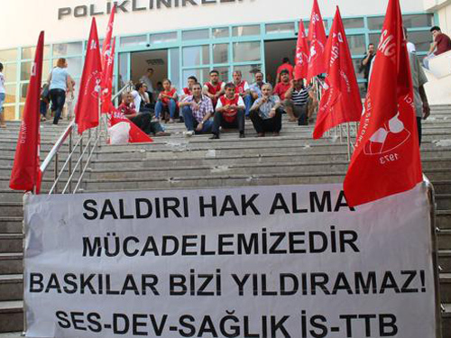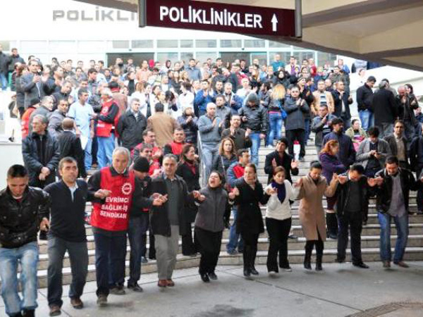 İşçilerin üyesi oldukları Dev Sağlık-İş ve Öz Sağlık-İş’in düzenlediği eyleme SES ve Genel-İş destek verdi.