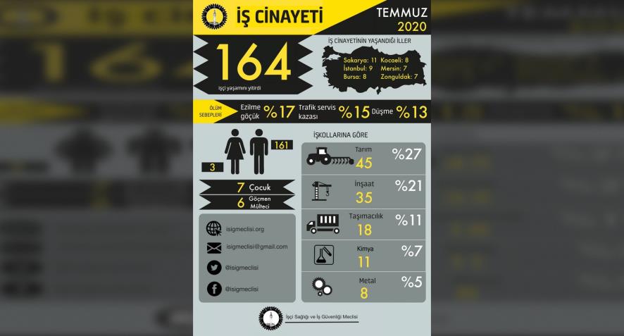 Salgın üzerine söylenenlerin ardından Ağustos ayında en az 208 işçinin iş cinayetlerinde yaşamını yitirdiği belirtilerek şu bilgiler paylaşıldı: