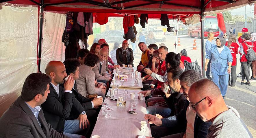Ziyaret sırasında “Akademi işçi sınıfının yanında”, “Akademi susmayacak, işçi sınıfı kazanacak”, “Yaşasın sınıf dayanışması” sloganları atıldı.