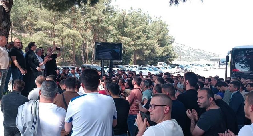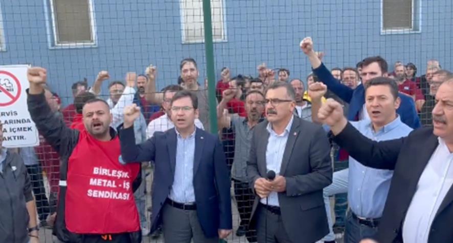 Bu sırada dayanışma için gelenler, diğer vardiyadaki işçiler ve Birleşik Metal-İş yöneticileri kapı önünde toplandı. DİSK Genel Sekreteri Adnan Serdaroğlu yaptığı konuşmada patronu uyardı. Kavgadan kaçmayacaklarını vurgulayan Serdaroğlu'nun konuşması sonrasında açıklama sloganlarla sona erdi.