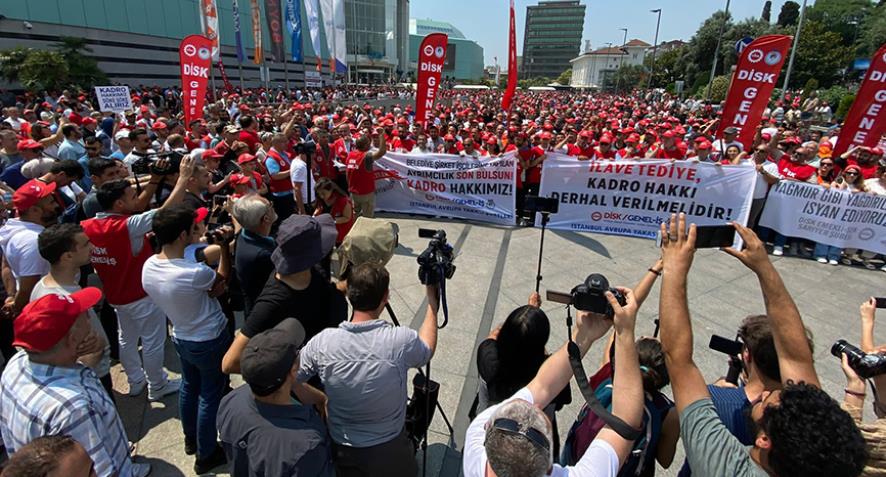 İstanbul’da Avrupa Yakası'nda binlerce belediye işçisi Cevahir AVM önünde taleplerini dile getirirken, Anadolu Yakası'nda ise Kadıköy, Kartal, Maltepe belediyesi işçileri açıklamalar yaptı.