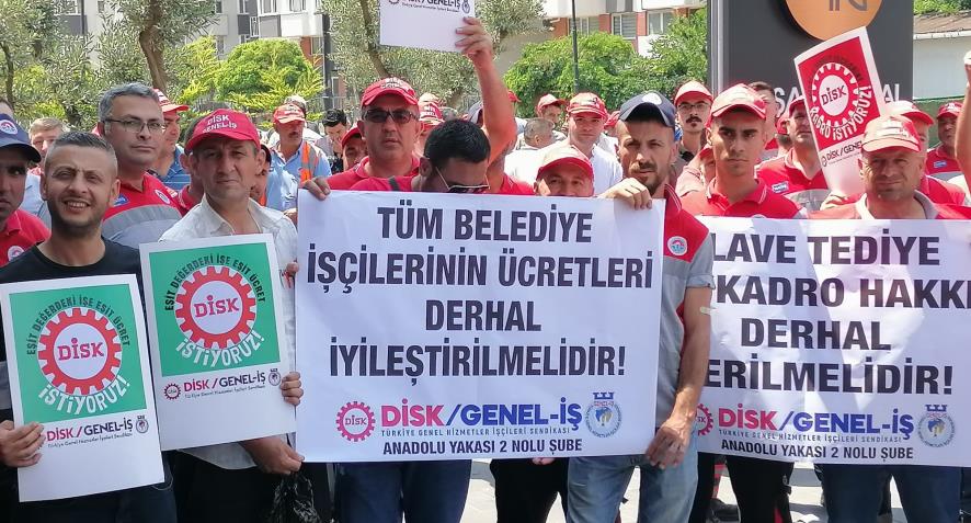 Maltepe Belediyesi işçileri Yaşar Kemal Kültür Merkezi, Kartal Belediyesi işçileri belediyenin eksi 2 çıkışında açıklama yaptı. Belediyelerde iki saatlik iş bırakma eylemi yapan işçilerin yanı sıra Kadıköy Belediyesi işçileri tam gün açıklama yaptı.