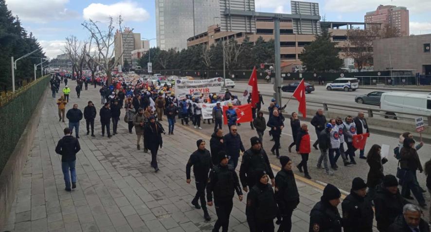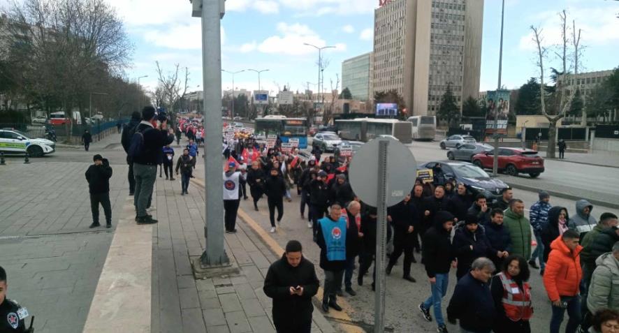 Özelleştirme saldırısına karşı 5 gündür yürüyüşte olan Çayırhan işçileri bugün (13 Ocak) saat 12.00’de Anıt Park'ta toplandılar. Sloganlarla parkta bekleyen işçiler, ardından kortej oluşturup yürüyüşe geçtiler. Eskişehir Yolu üzerinden Hazine ve Maliye Bakanlığı önüne ulaşan işçiler, yürüyüş esnasında sık sık "İşçiyiz haklıyız kazanacağız!", "Direne direne kazanacağız!" sloganlarını attılar. İşçiler, yol boyunca ara ara yere oturup, baretlerini yere vurarak tepkilerini gösterdiler.