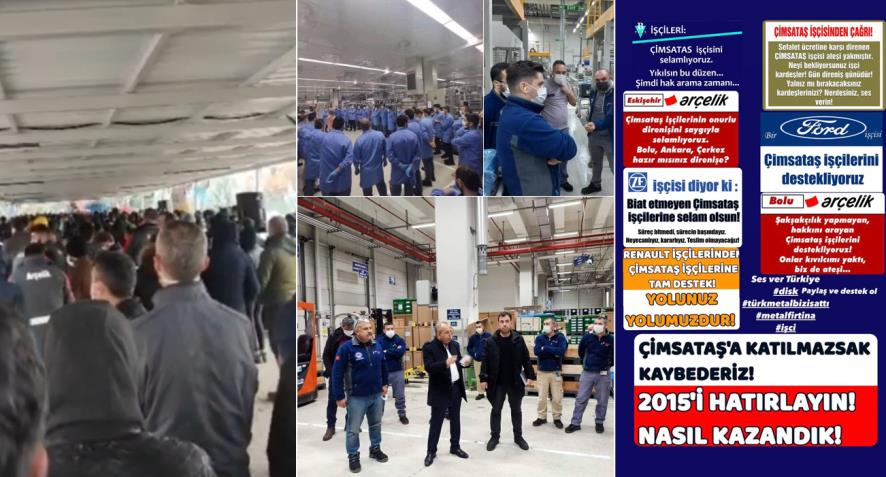 "Çimsataş işçileri 16:00-00:00 vardiyasında iyileştirme talebiyle iş durdurma eylemi başlattılar. Metal İşçileri Birliği olarak Çimsataş işçilerinin bu cesur ve anlamlı duruşunu selamlıyoruz. Ve hangi sendikaya üye olursa olsun bütün metal işçilerini Çimsataş işçilerinin açtığı yoldan yürümeye bir kez daha davet ediyoruz."