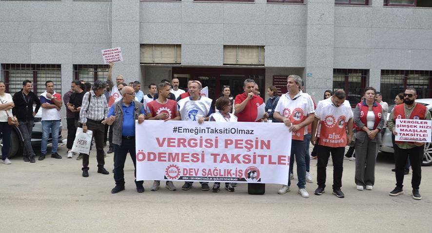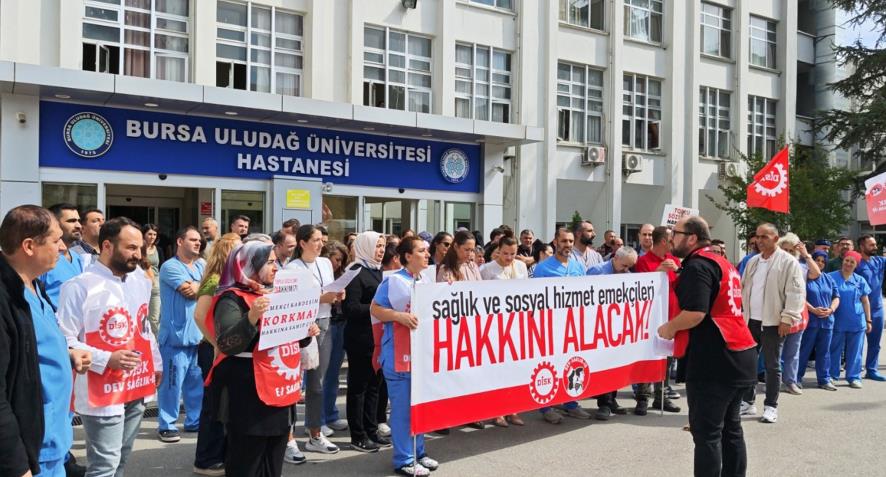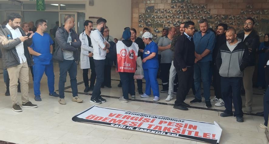 Ankara Üniversitesi İbn-i Sina Hastanesi’nde çalışan sağlık emekçileri sağlık emekçilerinin geriye dönük ödemelerin taksitle yapılmak istenmesine karşı eylem yaptı.