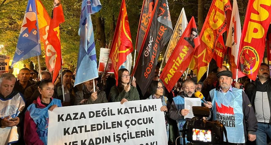 "Kaza değil, katliam! Katledilen çocuk ve kadın işçilerin hesabı sorulacak!" pankartının açıldığı açıklamada şunlar denildi: