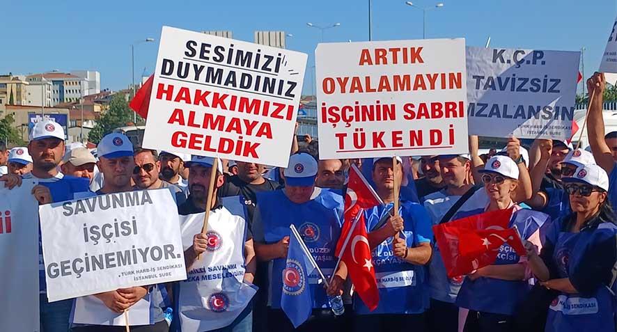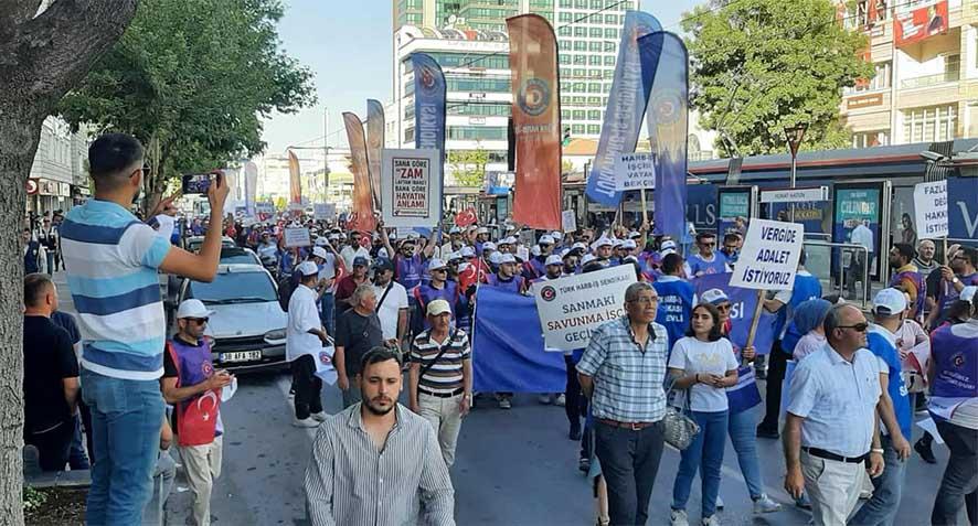 Harb-iş üyesi savunma sanayi işçileri kamu sözleşmelerinde sefalet dayatmasına karşı ülkenin dört bir yanında mücadele ediyor, eylem yapıyorlar. Bu eylemlerden biri de bugün Kayseri'de düzenlendi. Harb-İş üyesi savunma sanayi işçileri yoksulluğa, sefalete karşı Kayseri Forum önünde bir araya gelerek Kent Meydanı’na yürüdüler. Yaklaşık 600 işçi beşer kişilik kortej oluşturarak coşkulu bir yürüyüş gerçekleştirdiler.