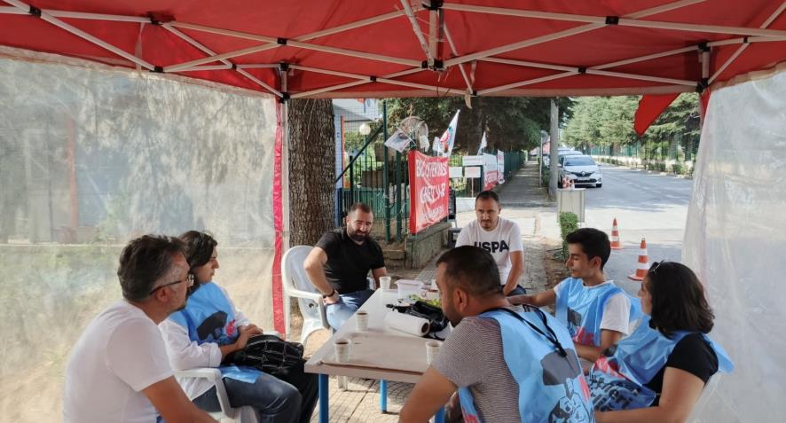 Grev çadırında işçilerle grevin seyri ve işçi sınıfının yaşadığı sorunlar üzerine konuşuldu. İşçi sınıfının öncülerinin tarihsel, sınıfsal bilinç noktasında ilerletilmesinin ve sayılarının arttırılmasının gerekliliğinden bahsedilen konuşmalarda tarihsel örnekler verildi.