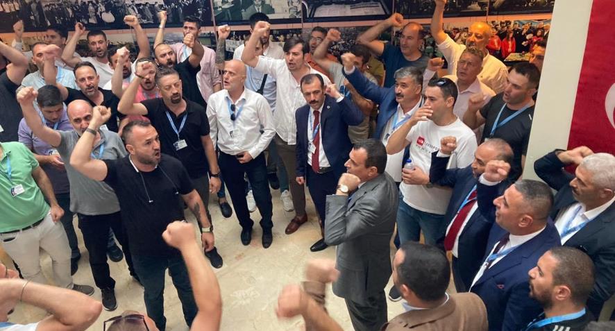 Muhalif liste adayı Eyüp Akdemir’i destekleyen delegeler salonda yer olmadığı gerekçesiyle salona alınmadı ve sloganlarla ıslıklarla protesto etti.