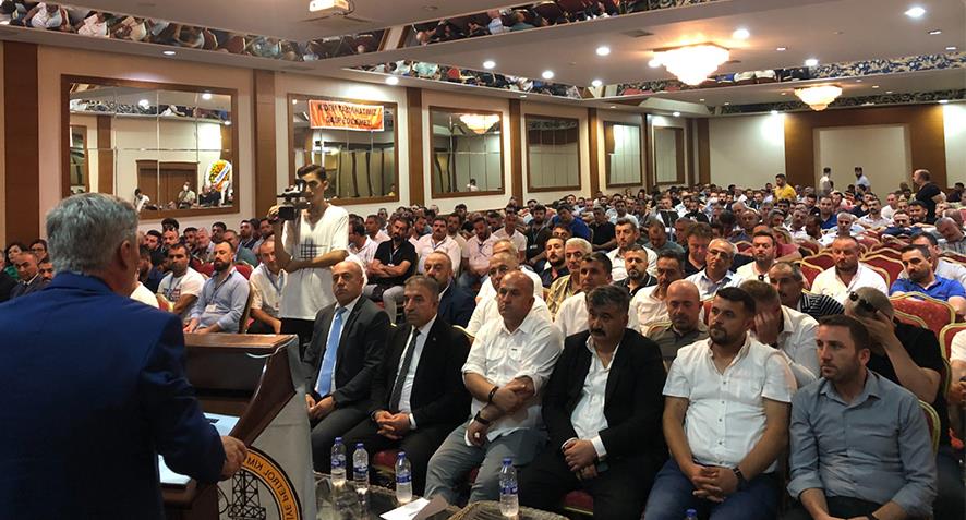 Genel Kurul’da bir delege konuşmasının ardından delege konuşmaları oldu bittiye getirilerek sonlandırıldı. Genel Kurul iki listenin adaylarının konuşmaları ile devam etti. Süleyman Akyüz’ün listesinden tekrar aday olan Genel Sekreter Salih Akduman’ın konuşması sırasında salonda karmaşa çıktı. Sabah başlayan gerilim Genel Kurul’un sonuna doğru iyice tırmandı. Arbedenin sonlanması için Genel Kurul'a ara verildi.