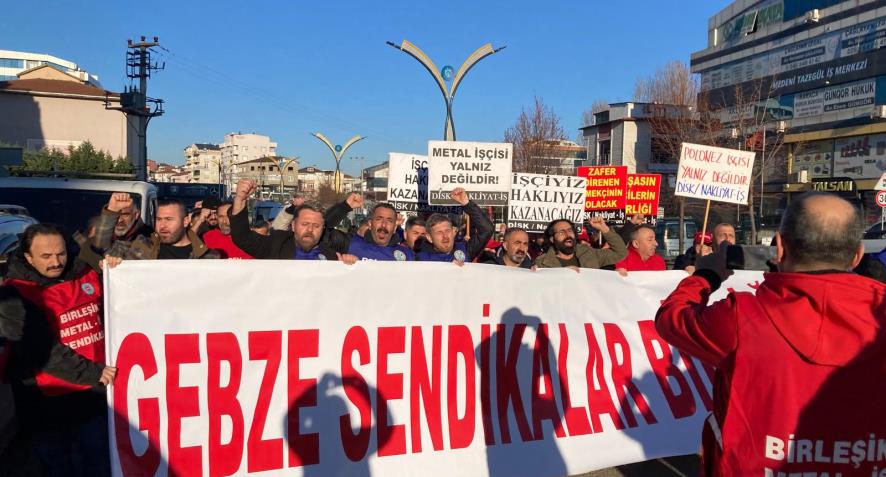 Polonez işçileri Gebze'ye ulaştı. Direnişçi işçiler Adliye Kavşağı'nda Gebze Sendikalar Birliği tarafından sloganlarla karşılandı.