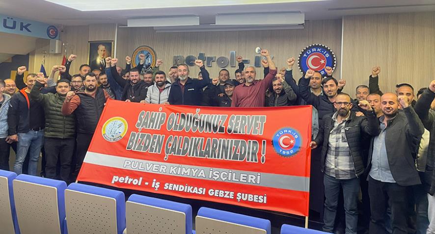 Petro Kimya İşçileri Birliği Pulver Kimya işçilerinin grev kararını astığı görüntüleri sosyal medya hesaplarında paylaştı.