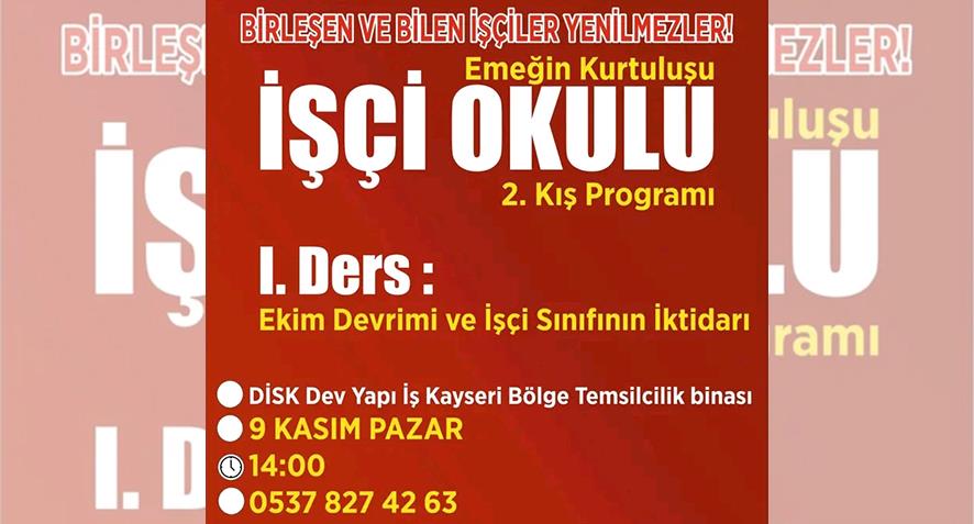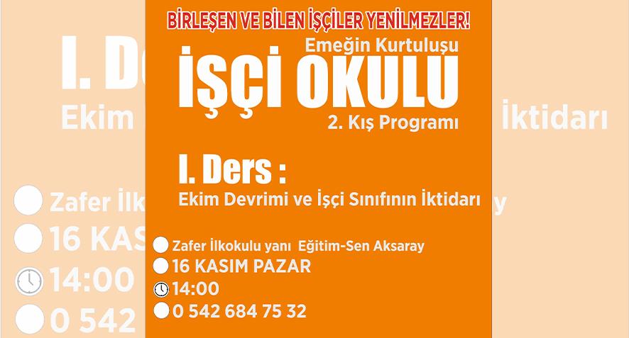 Emeğin Kurtuluşu İşçi Okulları’nın kış döneminin ilk oturumunda “Ekim Devrimi ve İşçi Sınıfının İktidarı” konusu işlendi.