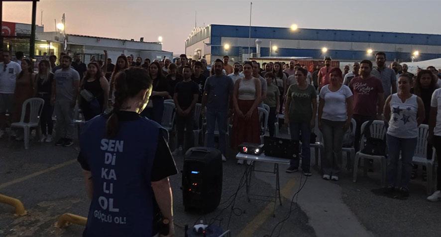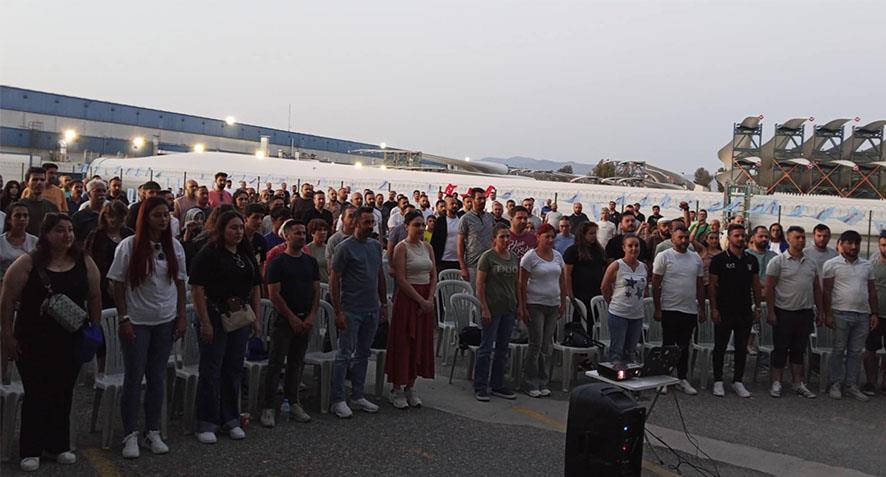 Amerikan sermayesi TPI kapitalistinin yüzde 30 sefalet zammı dayatmasını kabul etmeyen Petrol-İş üyesi TPI işçilerinin grevi 33. gününde devam ediyor. Petrol-İş İzmir Şubesi, 15-16 Haziran Büyük İşçi Direnişi’nin 55. yılı vesilesiyle Çiğli Sasalı’da bulunan grev alanında, grevci DYO işçilerinin de katıldığı bir etkinlik gerçekleştirdi.
