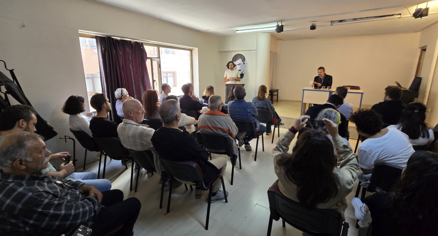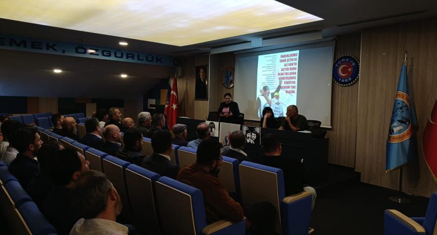 EDS Gebze temsilcisi Elmas Duman açılış konuşmasını yaptı. Ardından kitabın yazarı Bağımsız Maden İş Sendikası Eğitim ve Örgütlenme Uzmanı Başaran Aksu kitaba dair anlatım gerçekleştirdi.