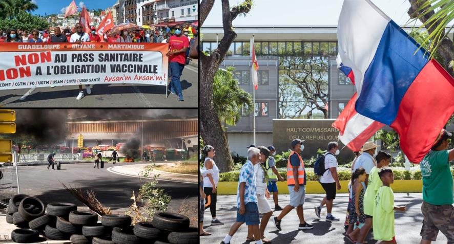 Guadalup’ta yoksulluk, işsizlik, hayat pahalılığı gibi sorunlara Fransa devleti tarafından Covid-19 pasaportu uygulaması eklenince, halkın öfkesi 15 Kasım’dan itibaren sokaklara taşarak, isyana ve sendikaların çağrısıyla genel greve dönüştü. Ülkenin dört bir yanında ana yollar ve göbekler barikatlarla kapatıldı. Yerel kolluk ve Fransız güçlerine karşı direniş sergilendi. Başta sağlık çalışanları ve itfaiyeciler sokağa çıktılar. Grev dalgası öğretim görevlilerine, benzin istasyonundaki pompacılara, otel ve restoran çalışanlarına ve son olarak da tarım işçilerine kadar yayıldı.