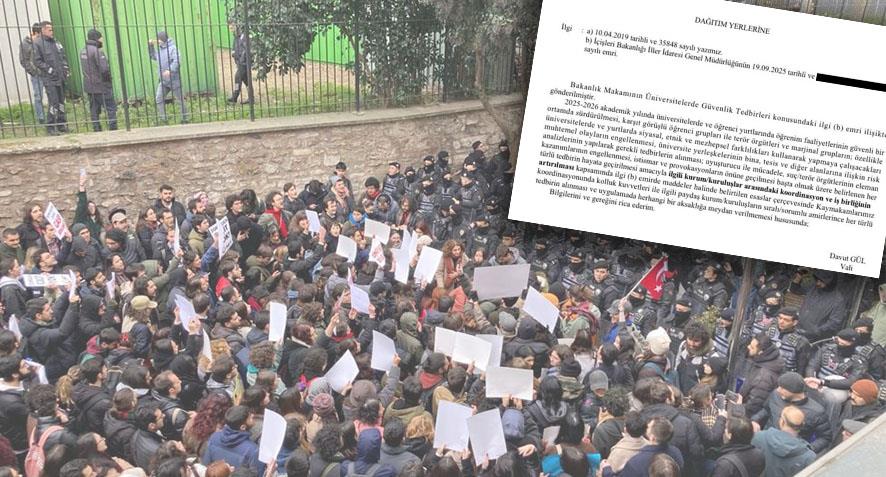 21 Eylül tarihinde İstanbul Valiliği’nce üniversitelere gönderilen genelge ile “öğrenim faaliyetlerinin güvenli bir ortamda sürdürülmesi” için güvenlik önlemlerinin artırılması emredildi. Bu talimatla “suç/terör örgütlerinin eleman kazanmasının engellenmesi, provokasyonların önüne geçilmesi; siyasal, etnik ve mezhepsel farklılıklar kullanılarak yapmaya çalışacakları olayların engellenmesi” hedefleniyormuş.